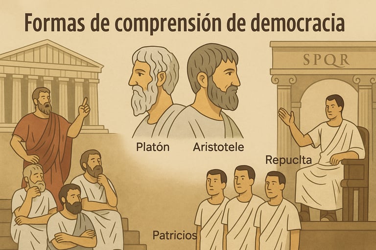 La democracia surgió en la antigua Grecia como una nueva forma de gobierno que rompía con las monarquías, donde el poder estaba concentrado en una sola persona. En cambio, la democracia proponía que las decisiones fueran tomadas por la comunidad. Filósofos como Platón y Aristóteles la definieron como el “gobierno del pueblo” o “de los más”. Sin embargo, en aquella época solo los hombres libres y propietarios podían participar; las mujeres, los esclavos y los extranjeros quedaban excluidos.