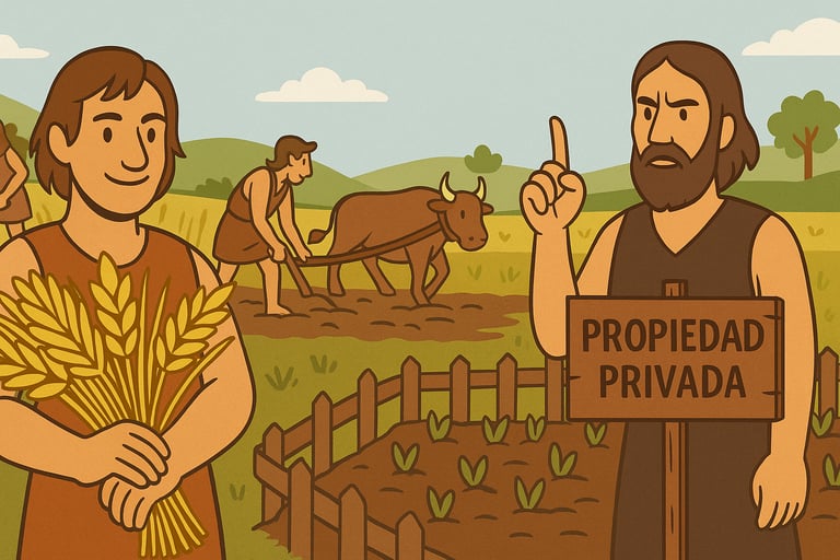 Antes, todo era compartido, pero el sedentarismo cambió las reglas. Cuando las personas empezaron a vivir en un solo lugar y a cercar sus tierras, el concepto de “mi terreno” o “mi cosecha” se volvió normal. Fue el inicio de una sociedad desigual, donde unos producían y otros controlaban. Así comenzó la larga historia de la propiedad privada, un tema que aún hoy sigue generando debates y reflexiones.