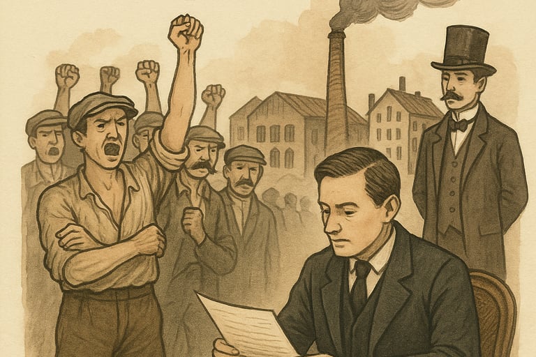 Con el paso del tiempo, las fábricas se llenaron de obreros, y estos empezaron a notar que no todo era justo en su mundo. Así que, poco a poco, comenzaron a organizarse y a crear partidos y movimientos que representaran su voz. Querían algo simple: una vida más digna y una sociedad donde todos tuvieran las mismas oportunidades. Era el inicio de una nueva fuerza social, la clase trabajadora.